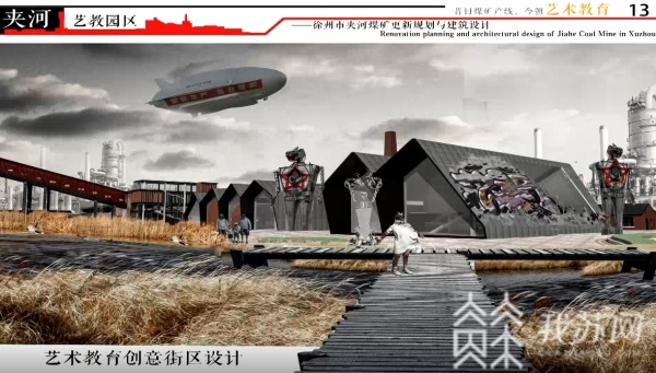 作品《昔日煤矿产线 今朝艺术教育》对徐州市夹河煤矿做了全新设计。煤矿等重工业在经历了科技转型后,工业模式发生转变,单纯拆除这些钢筋混凝土建筑,会带来建筑垃圾和资源的浪费,如何让这些工业遗产重获新生呢?
