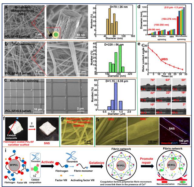 △纤维蛋白原包覆 PCL-SF 纳米纤维支架的制备和纤维蛋白密封剂负载纳米纤维支架 ( SNS ) 促进皮肤再生的原理