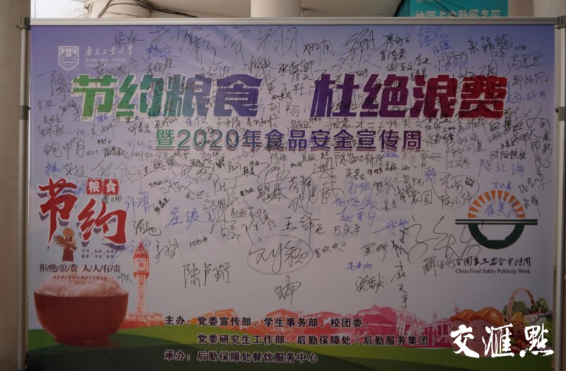 “诚信是一个人的立身之本,更是大学生的最基本素养,诚信也应是大学校园的健康底色。”南工大后勤保障处(后勤服务集团)总经理助理张霍胜,谈起宣传周的创意活动时表示。23日起,南工大在江浦校区东苑食堂前竖起了一块承诺墙,邀请广大师生在承诺墙签名,承诺以身作则,积极主动养成文明用餐、爱惜粮食,争做勤俭节约的践行者。