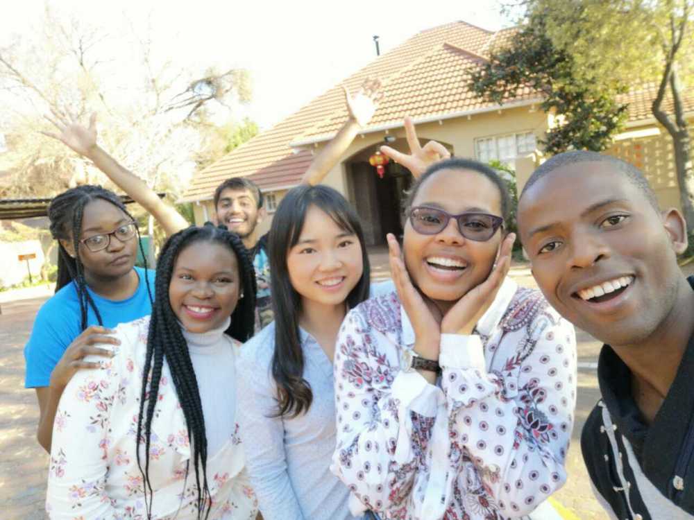 维真(左一)与约翰内斯堡大学孔子学院师生在学院里合影。受访者供图
