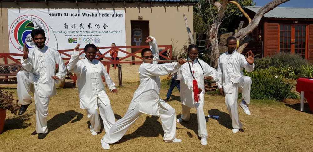 维真(右二)参加2018年南非武术联盟主办的全南非武术比赛。受访者供图