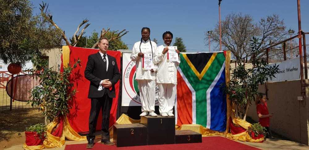 维真(中)在2018年全南非武术比赛中获得太极剑一等奖。受访者供图
