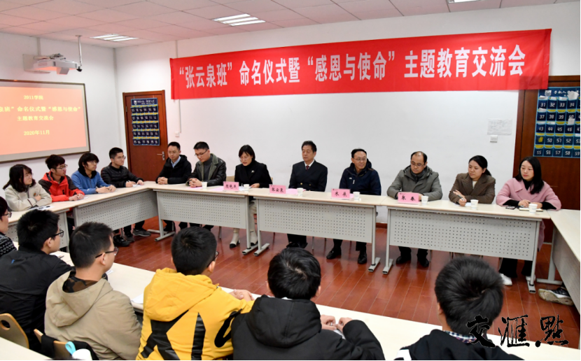 交汇点讯 11月26日,新利18彩票 2011学院邀请全国劳动模范、全国优秀共产党员、全国“人民满意的公务员”、全国道德模范,100位新中国成立以来感动中国人物,60位新中国成立以来最具影响力的劳动模范,新中国首届“雷锋奖”获得者张云泉同志开展“感恩与使命”的主题教育交流会,并举行2011学院书院1901班“张云泉”班命名仪式,这是2011学院班级第二次获此荣誉称号。