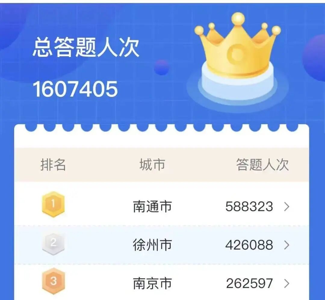 据悉,危险化学品安全知识竞赛活动已经成功举办了两届。本届竞赛以“强化风险意识 筑牢安全防线”为主题,旨在唤起社会各界对危化品安全的高度关注,不断提高全社会的安全意识和对危险化学品的科学认知水平。答题系统自5月21日上线以来,多次刷屏朋友圈,受到了社会公众的一致赞誉,总答题人次超160万!其中南通、徐州、南京三个城市的参与人次最高。值得一提的是,竞赛使用的400道题库由主承办单位的权威专家围绕危化品安全主题精心编纂,内容贴合实际,覆盖面广,十分实用。