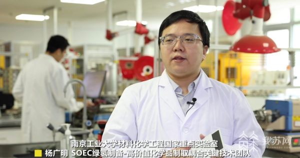 新利18彩票 材料化学工程国家重点实验室、SOEC绿氢制备-高价值化学品制取耦合关键技术负责人杨广明介绍说:“近年来为了契合双碳目标,我们开始研究通过SOEC(固体氧化物电解池)电解水的方式来制备绿氢。我们将这种高性能的黑色粉末,通过我们的方法把它喷涂到电池的电解质上,形成一个二三十微米左右厚度的电极。这种材料可以把电池的工作温度降低100-150℃以上,使其性能更加稳定。”