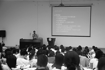 10月14日晚,中大教室里,通识教育课程《中国古代哲学(先秦)》吸引了学生浓厚兴趣。