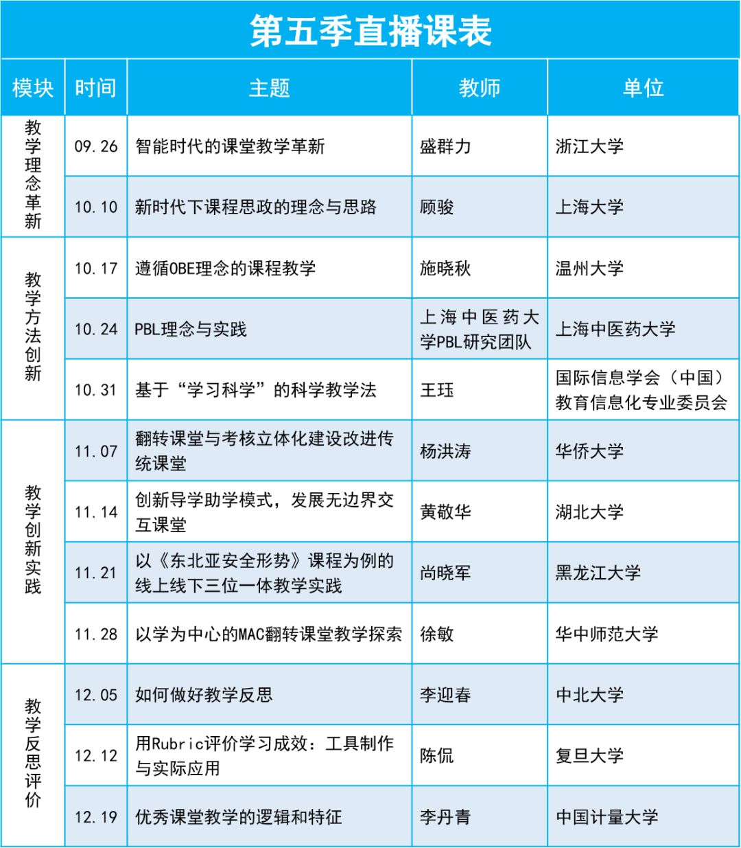 请各学院通知教师及时收看“超星教师发展直播讲堂”第五季(本学期内支持回看),并定期组织形式多样的专题教学研讨活动并做好记录,作为学院(部)教研活动的重要支撑材料,教发中心在下一季直播开始前通过系统后台按学院统计参与直播收看的教师人次数等予以公布。第4季观看直播的学院统计人数见附件。
