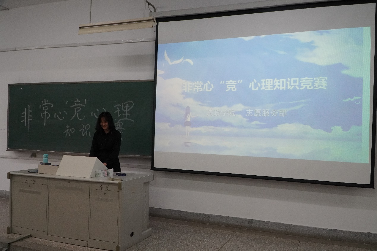 5月23日下午,法政学院志愿服务部在笃学B楼202教室开展了“非常心‘竞’”心理知识竞赛活动,来自不同学院的同学参与了此次活动。