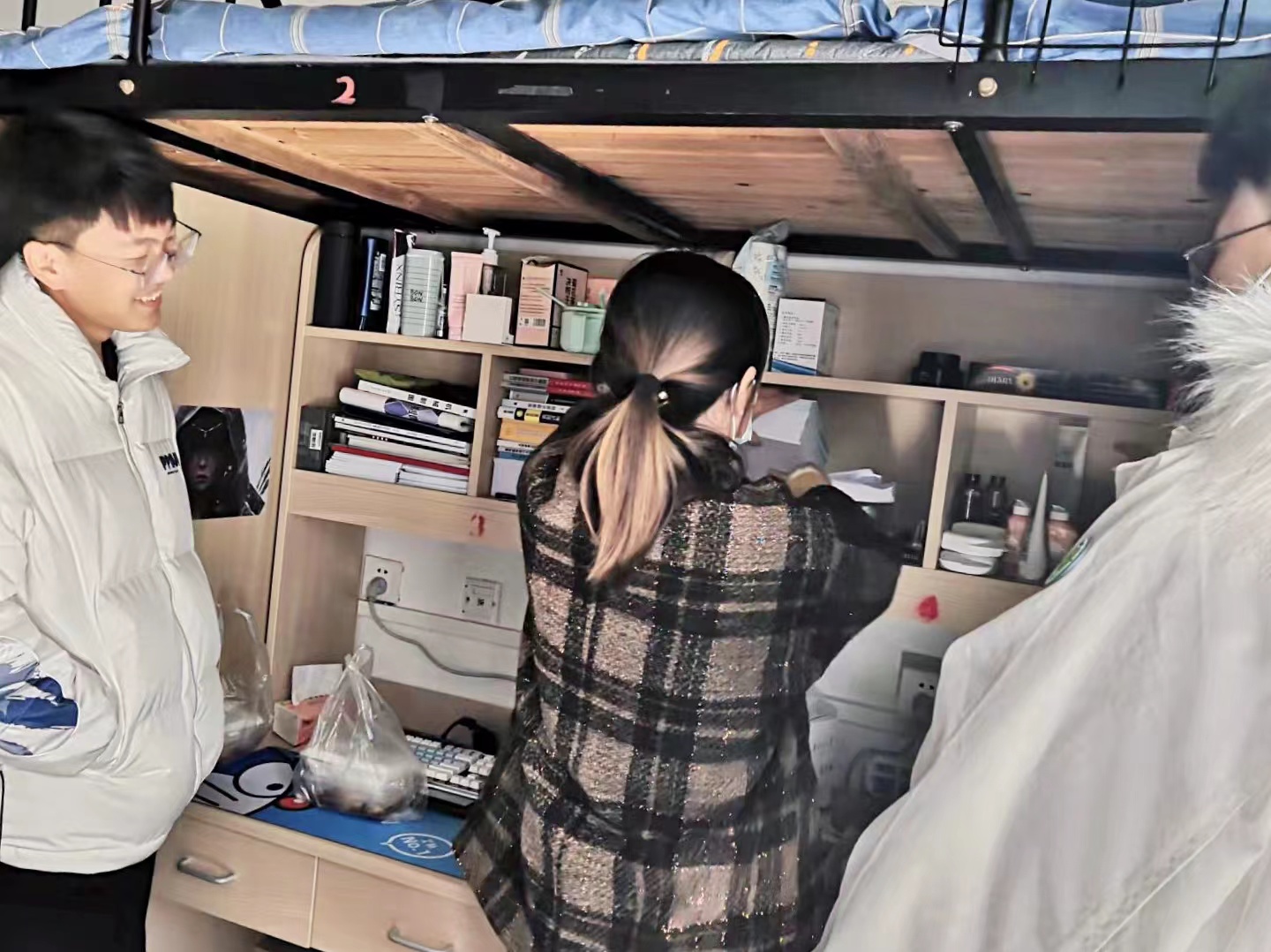 为进一步提升2021级新生的宿舍内务整理水平,强化卫生养成教育,11月22日上午10时,亚青村学生公寓组织全体管理员与机械学院退伍的高年级学生一起走进了30栋B单元101大厅,对一年级新生进行现场内务整理指导,其他宿舍同学分批进入观摩。