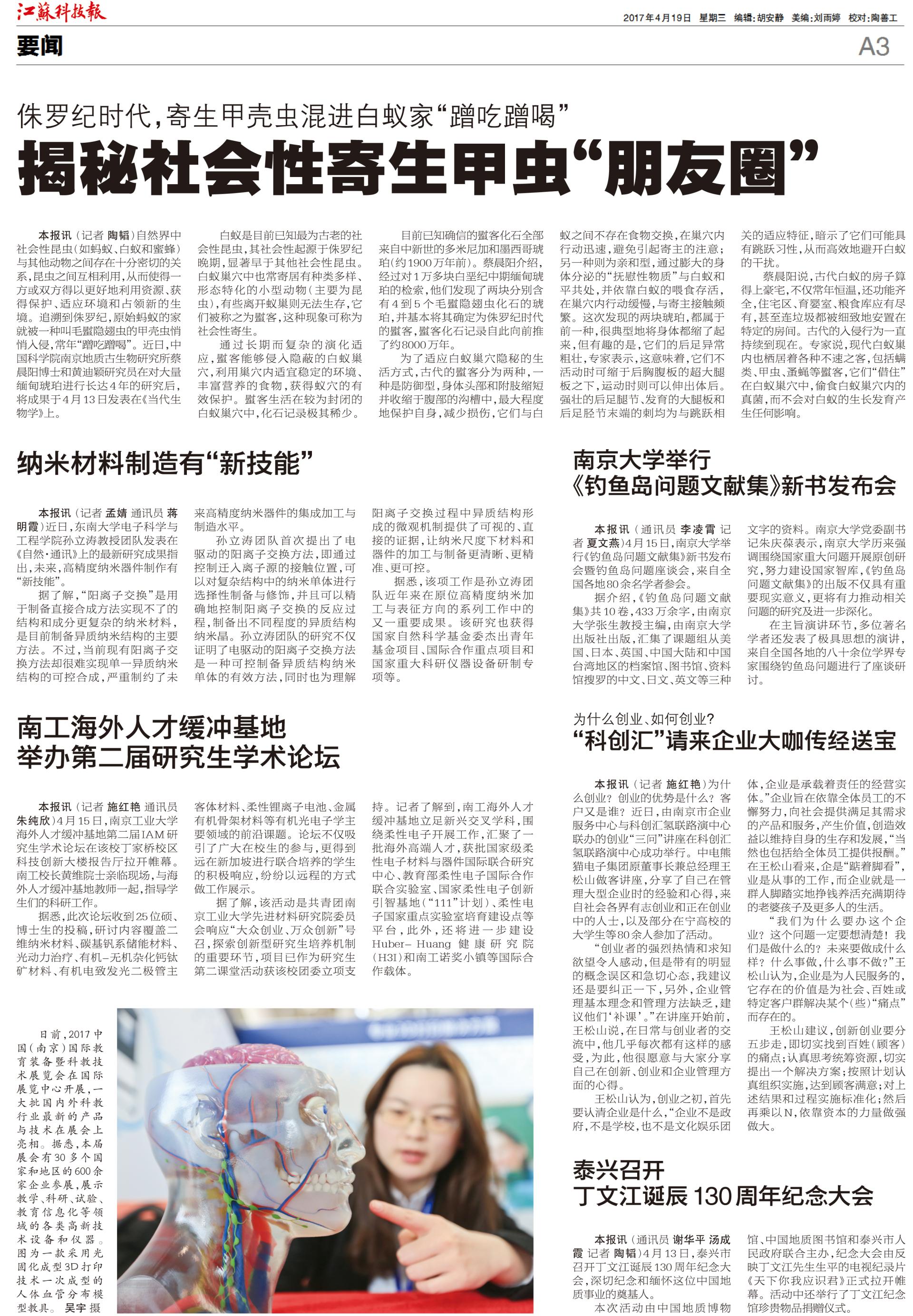 《江苏科技报》报道南工海外人才缓冲基地举办第二届研究生学术论坛