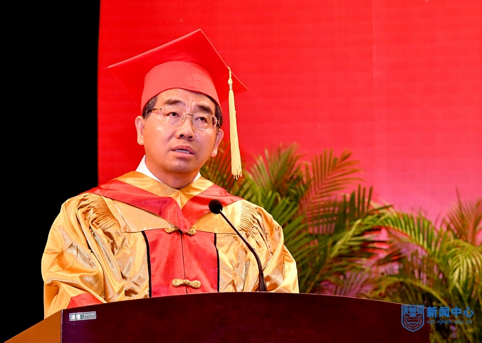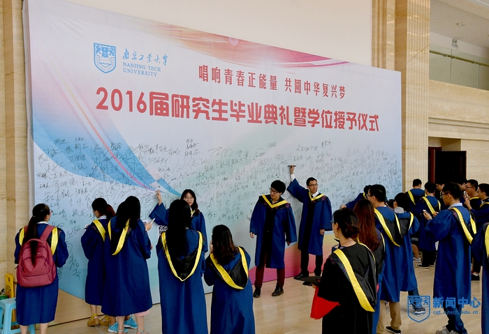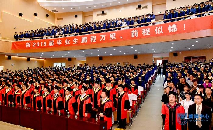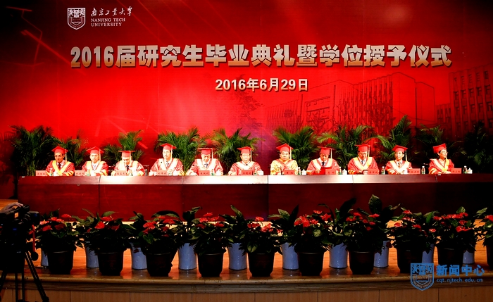 6月29日上午,我校2016届研究生毕业典礼暨学位授予仪式在江浦校区大礼堂隆重举行。校党委书记王德明,中科院院士、校长黄维,校党委副书记、纪委书记朱跃钊,校党委副书记、副校长高明,副校长刘伟庆、蒋军成、崔益虎、张进明、巩建鸣、邢卫红、校长助理吴胜红等出席典礼。各学院党委(党总支)书记、院长、分管研究生工作副院长、研究生秘书,机关相关部门主要负责人,研究生院全体成员,教师代表、在校生代表、家长代表、校友代表和2016届研究生毕业生济济一堂,共襄盛典。毕业典礼暨学位授予仪式由副校长刘伟庆主持。在庄严的国歌声中,毕业典礼暨学位授予仪式拉开序幕。校党委书记王德明宣读了《关于表彰2016届优秀毕业研究生的决定》。主席台领导为91名受表彰的优秀毕业研究生颁发了荣誉证书和学位证书。校党委副书记、纪委书记朱跃钊宣读《关于表彰2016届研究生优秀论文校长特别奖的决定》,校长黄维院士为6名获奖学生颁发荣誉证书并赠送专著《大学问》。随后,校领导为74名博士毕业生逐一授予了学位。博士毕业生代表、化工学院黄康同学深情地表达了对母校、恩师的教导培育感恩之情,表示将继续弘扬南工精神,为母校添光加彩。计算机科学与技术学院 2014级硕士生佟京达同学代表全体在校生向即将毕业的学长、学姐们表达了诚挚的祝贺与依依惜别之情。教师代表、机械与动力工程学院院长凌祥教授向全体毕业生赠予“创业成就梦想,创新改变中国”的寄语。校友代表、陶氏化学亚太区首席科学家陈红宇博士结合自身工作经历,诠释对“明德、厚学、沉毅、笃行”校训的理解,激励全体毕业生诚实守信,勤奋努力,秉承母校的优良传统,勇于创新,知行合一,走好人生每一步。校长黄维院士向1500多名2016届研究生毕业生送上最热烈的祝贺。在《自信担当,分享未来》为题的讲话中,黄维校长与同学们分享了诺贝尔奖的故事。黄校长指出,莫言、屠呦呦先后获得此奖,证明了他在2013级本科生开学典礼上的相关预言,相信在未来,在世界舞台上,中国智慧将绽放更加夺目的光华,光耀人类文明与科学进步。黄维校长通过诺贝尔奖背后的故事寄语即将毕业的研究生:一要自信担当。全体毕业生要坚定民族自信,投入共和国创新创业的时代洪流,推进中国制造、中国建造走向世界。希望你们以宇宙之奥、人生之源为毕生探寻之目标,在浮夸与喧嚣中坚守理想和信仰,处顺境、不轻浮;遇逆境、不自弃,胸怀大志、自信担当。二要分享未来。分享是一种需求,更是动力;分享是一种态度,更是美德;分享是一种乐趣,更是情怀。学会分享,人生不会孤独,必有志同道合者一路前行;学会分享,事业必会日新月异,绽放创新之芬芳、勃发创业之激情;学会分享,付之于智慧与力量的使命担当与社会责任必会熠熠生辉,对民族、对国家必有一份自己独特的贡献。三要智慧分享。分享是和而不同、平等对话的分享;分享是深刻融合、映射自我的分享;分享是无限跨界、共赢发展的分享。“利可共而不可独,谋可寡而不可众”。敢于和众人分享利益,展示胸怀和境界;而谋划大事的范围则须谨慎,应免于被裹挟、被动摇于无端彷徨之中。“与世界分享,自信担当民族之使命、国家之未来,导演属于你们自己的故事”。最后,黄维校长送给研究生毕业生以上临别赠言,并期待广大毕业生常回母校看看,讲述自己的“南工好故事”。刘伟庆副校长在总结讲话时勉励广大研究生毕业生志存高远,把黄校长的殷切寄语和老师们的谆谆教诲化作今后不断前行的动力。研究生毕业典礼暨学位授予仪式在催人奋进的校歌声中落下帷幕。会后,校领导与优秀研究生毕业生和博士毕业生分别合影留念。学校还向每位研究生毕业生赠送了黄维校长专著《大学问》。(文:研究生院;图:钱澄)