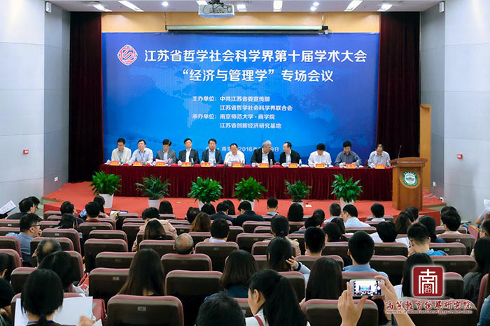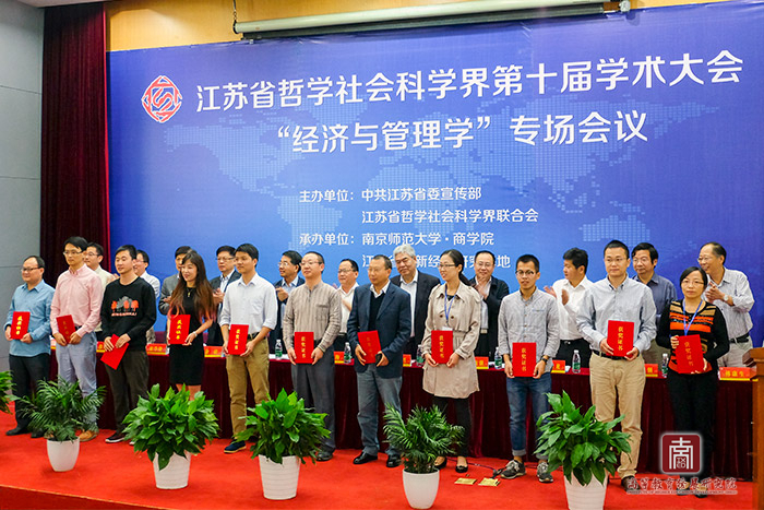 10月9日,江苏省哲学社会科学界第十届学术大会经济与管理学专场在南京师范大学仙林校区隆重举行。省哲学社会科学界联合会党组书记、常务副主席刘德海,东道主南京师范大学校长胡敏强,中国科学院院士、我校校长黄维教授,各大高校商学院与经管学院院长,以及众多深耕细作于经济学、管理学学科的上百名学者专家齐聚南京,共同见证了优秀论文颁奖的盛况,聆听了学术大师的大会主题报告,进行了分论坛的热烈讨论。在一天的活动中,大家以“供给侧结构性改革与江苏产业升级”为文眼,各抒己见,为这项江苏哲学社会科学界的顶级盛会增添了最亮丽的色彩。