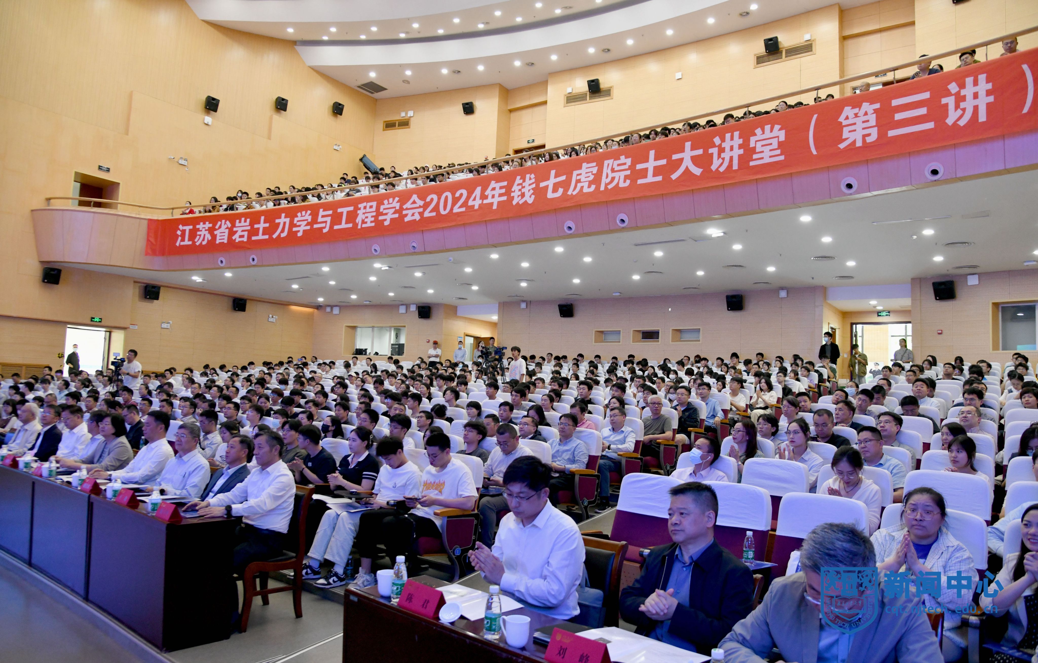5月15日,由江苏省科协指导、江苏省岩土力学与工程学会主办、我校承办的“钱七虎院士大讲堂”(第三讲)在博雅堂举行。中国工程院院士、国家最高科学技术奖获得者、“八一勋章”获得者、国家防护工程专家钱七虎,中国工程院院士、我国地质工程学科(探矿工程领域)学科带头人、中国地质大学(北京)校长孙友宏作主题报告。江苏省科协党组成员、副主席徐春生,江苏省岩土力学与工程学会理事长、东南大学首席教授刘松玉,校长蒋军成、纪委书记王敦宝参加活动。蒋军成主持报告会。