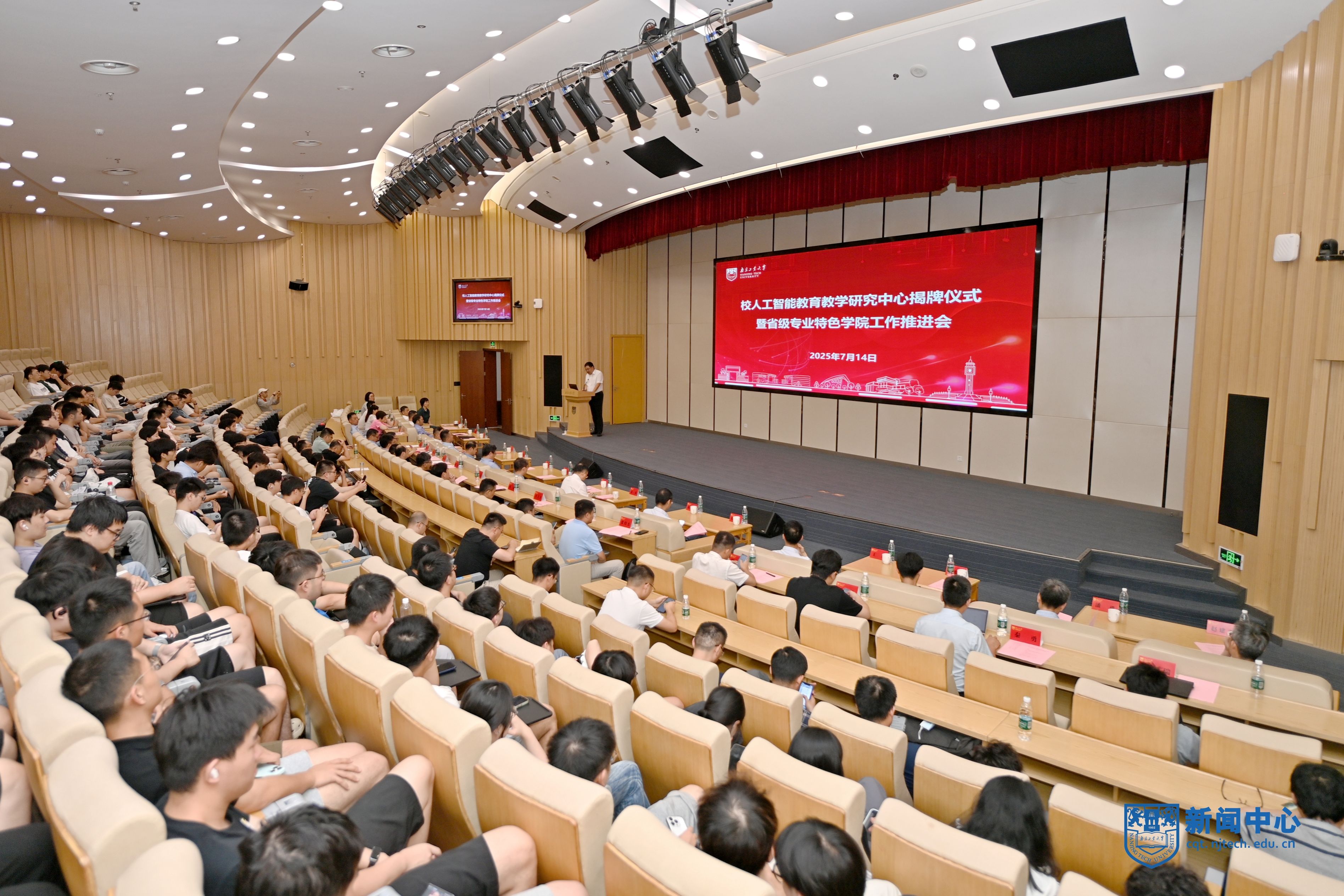 7月14日下午,我校人工智能教育教学研究中心揭牌仪式暨省级专业特色学院工作推进会在江浦校区弘毅楼五楼报告厅举行。省教育厅高教处处长徐庆、清华大学公安部全国重点实验室主任周杰、南京航空航天大学校长姜斌、南京邮电大学副校长刘青山、哈尔滨工程大学智能科学与工程学院院长蔡成涛、东南大学教授魏海坤、我校副校长陆伟东及华为、南京埃斯顿等企业嘉宾出席会议。会议由教务处处长陆春华主持。