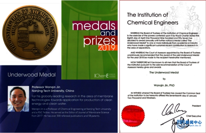 2019年5月23日,我校金万勤教应邀出席在英国伯明翰国际会议中心举行的英国化学工程师学会IChemE颁奖典礼,被授予2018/19年度唯一Underwood奖章,以表彰其“在面向清洁能源和水资源的膜技术领域的国际领先研究”(For his globally-leading research in the area of membrane technologies towards application for production of clean energy and clean water)。