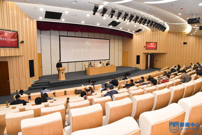 5月9日上午,学校在江浦校区国家重点实验室五楼报告厅召开全校党务工作会议。校领导芮鸿岩、崔益虎、吴胜红出席会议。各党群部门主要负责人、各基层党委(党工委、党总支)书记参加会议。会议由校党委副书记崔益虎主持。