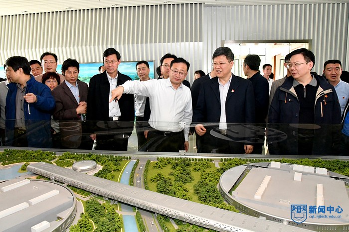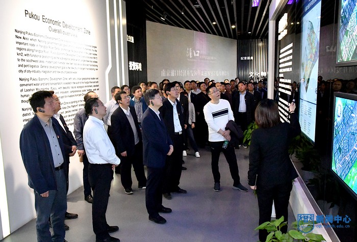 为更好地了解江北新区发展,做好“两落地一融合”工作,实现学校“学科地图”与江北新区“产业地图”的有效对接,推进与江北新区相关领域的深度合作,积极融入南京创新名城建设,3月28日下午,由校党委书记芮鸿岩带队,副校长刘伟庆、牛生杰、蒋军成、吴胜红及全体中层正职干部培训班学员赴浦口经济开发区展示中心、王荷波纪念馆、江北新区研创园、综合管廊、规划展示馆等现场考察学习。