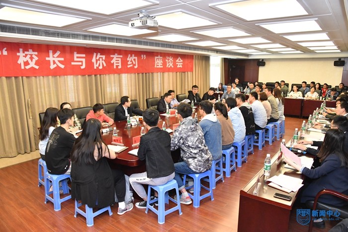 随后,师生们围绕学生成长、校园建设、内涵提升、制度改进等话题进行了三个小时的交流。与会同学从自身发展出发,对于加强思想政治工作、提升文化素质和创新创业能力、提高学习效率、开展交叉学科学习等问题发表了自己的看法,围绕课程安排、校园生态、宿舍建设、食堂分配、教室利用等方面提出了自己的意见与建议,校领导及与会各部门负责人就相关意见建议作出回应,涉及部门当场进行了表态落实。