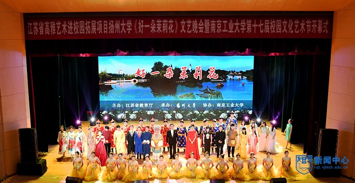 5月9日晚,第十七届18新利客户端下载 艺术节在江浦校区大礼堂开幕,扬州大学师生演出了一场精彩的文艺晚会《好一朵茉莉花》。我校党委书记芮鸿岩、扬州大学党委副书记叶柏森、我校副校长崔益虎等领导嘉宾与千余名师生共同观看了晚会。