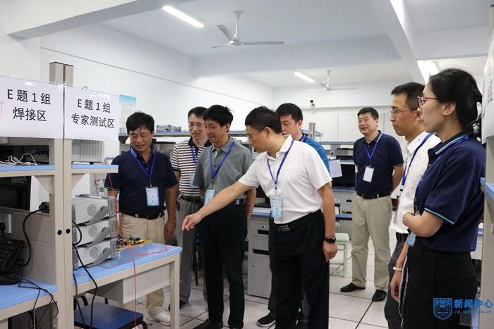 竞赛期间,副校长张进明、省大学生电子设计竞赛组委会秘书长胡仁杰、校教学事务部部长董军、副部长钱小明等一行慰问了酷暑中参加测评的所有专家、参赛选手、工作人员和志愿者。