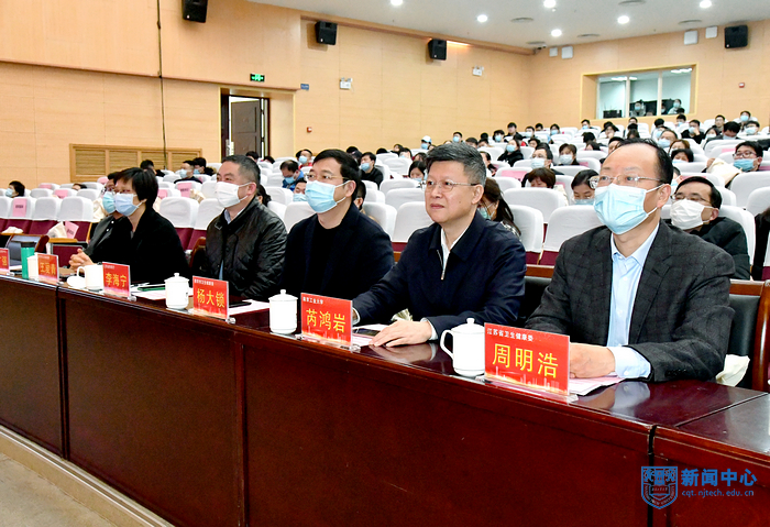 江苏省卫健委副主任周明浩、教育厅二级巡视员李金泉,南京市卫生健康委副主任杨大锁、江北新区卫生健康和民政局局长陆小军,我校党委书记芮鸿岩、副校长牛生杰,在宁高校校医院负责人,我校400多名师生代表和志愿者等共同参加活动。