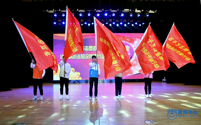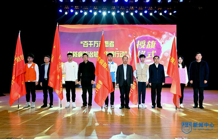 活动最后,举行了“百千万志愿者结核病防治知识传播行动”授旗仪式。与会领导向我校志愿者代表授旗,鼓励志愿者们把结核病防治知识传播行动和志愿者公益精神持续进行下去。