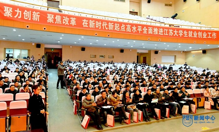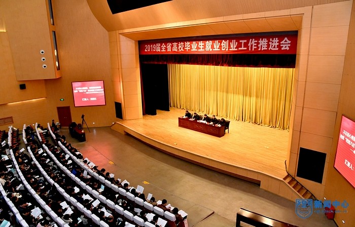 上午九点,2019届全省高校毕业生就业创业工作推进会在大礼堂召开。芮鸿岩书记首先致辞,他对各位领导嘉宾的到来表示感谢,并就我校的办学特色和就创业工作成效作了简要介绍,强调“大学生就业创业工作的改革创新,关系到教育改革的系统性、整体性、协同性,关系到国家所需要的创新型、复合型、应用型人才的培养使用,更关系到中华民族伟大复兴中国梦的传承和存续。”随后,南京理工大学、新利18彩票 、扬州大学、淮阴师范学院、江苏建筑职业技术学院五所高校分别就各自学校在就业创业工作中的典型经验进行了交流发言。“聚力发展,围绕成才,我校在就业创业工作中探索搭建了‘四梁八柱’就业创业工作体系。”吴胜红副校长与与会人员分享了学校在就业创业中的探索和成绩。最后,省教育厅副厅长苏春海作大会主题报告,总结回顾了全省2018届毕业生就业工作的经验成绩和问题不足,并就进一步开展2019届全省毕业生就业创业工作进行了动员部署,强调要全力以赴做好全省2019届高校毕业生就业创业工作,增强做好工作的使命感,一是全面狠抓落实,强化责任落实、思想教育和监督管理;二是要有效拓宽就业渠道,要服务重大战略、服务新兴业态、服务现代服务业和服务国防建设;三是要深入推进创新创业,要深化教育教学改革、加大创新创业基地投入、健全创业服务机制;四是要不断优化指导服务,要加强精准信息服务、特色市场建设、职业发展教育和工作队伍建设。