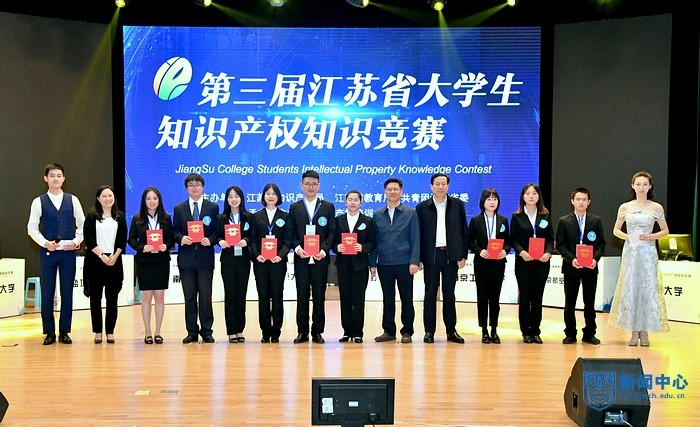 在第十九个“4.26”世界知识产权日来临之际,由江苏省知识产权局、江苏省教育厅、共青团江苏省委主办,国家知识产权培训(江苏)基地承办的第三届江苏省大学生知识产权知识竞赛决赛于4月25日晚在我校江浦校区大礼堂举办。江苏省知识产权局局长支苏平、共青团江苏省委副书记林小异、省教育厅科学技术与产业处处长张兆臣、江苏省知识产权局副局长施蔚、共青团江苏省委高校工作部部长常晓岚,我校校长乔旭、校党委副书记崔益虎等嘉宾出席活动。