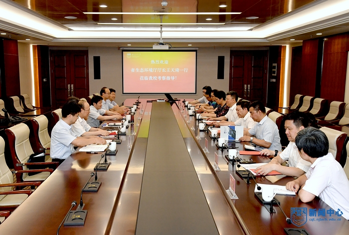 6月12日下午,江苏省生态环境厅厅长王天琦一行来校调研环保科技成果推广工作,校领导芮鸿岩、乔旭、邢卫红、郝建祥及党委办公室、校长办公室、科学研究部、化工学院、环境学院、材料化学工程国家重点实验室等相关单位负责人陪同调研并座谈交流。会议由校党委书记芮鸿岩主持。
