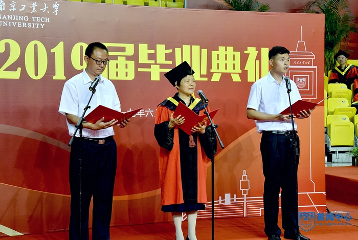 6月20日上午,我校2019届毕业典礼在江浦校区体育馆隆重举行。校领导芮鸿岩、乔旭、崔益虎、牛生杰、李世收、邢卫红、吴胜红、凌祥、郝建祥、赵志宏出席典礼。2019届本科生、研究生毕业生及家长代表、校友代表、在校师生代表等参加典礼。