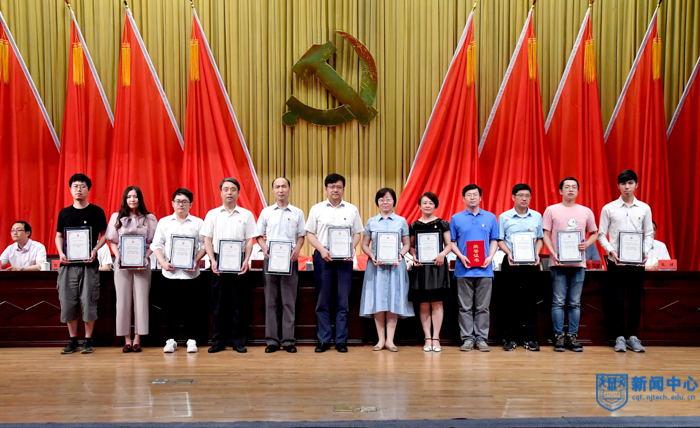 2019年7月1日下午,我校在江浦校区大礼堂隆重召开建党98周年暨2018-2019年度“两优一先”表彰大会。校党委常委芮鸿岩、崔益虎、牛生杰、巩建鸣、吴胜红、凌祥、郝建祥、赵志宏、郭万牛、张健、刘大卫及其他两委委员,各党政职能部门负责人,各基层党委(党工委、党总支)书记、副书记,党支部书记代表,师生党员代表,全体受表彰集体和个人参加了大会。会议由校党委副书记崔益虎主持。
