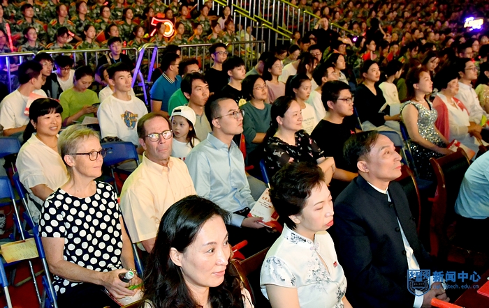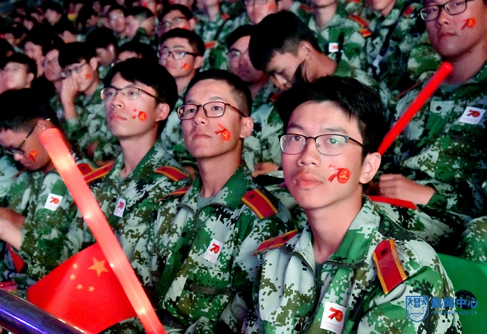 9月24日、25日两晚,我校“光荣与梦想”庆祝中华人民共和国成立70周年暨2019年迎新晚会在江浦校区体育馆隆重举行。校领导芮鸿岩、乔旭、李世收、邢卫红、吴胜红、凌祥、郝建祥,党委常委、党委组织部部长郭万牛,党委常委、党委办公室主任、党委统战部部长刘大卫,新生军训旅旅长刘良栋上校,副旅长苏融少校、郑鹏上尉,江北新区公安分局内保支队副支队长王敏等领导嘉宾与相关职能部门负责人,各学院分管学生工作党委(党总支)书记、副书记,团委书记,军训教官,新生辅导员,2019级本科生、研究生及留学生代表欢聚一堂,共同观看了演出。