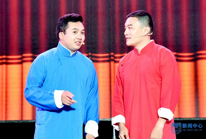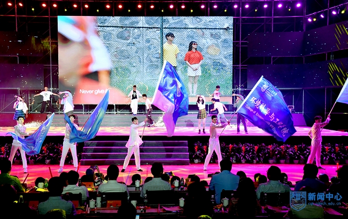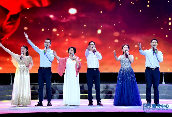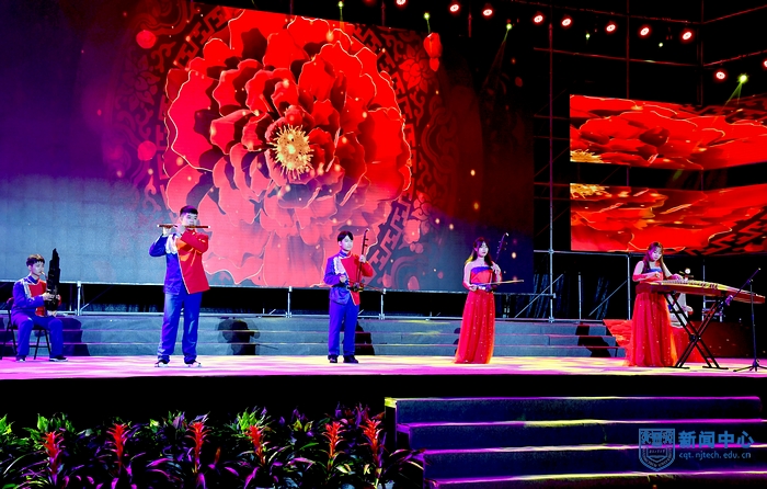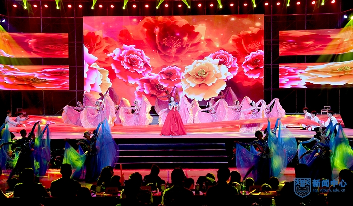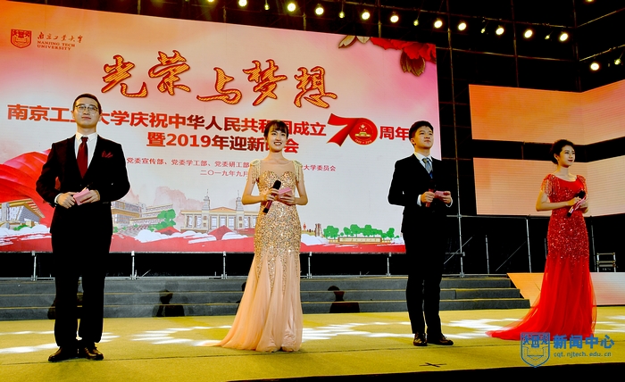 晚会在庄严的国歌声中拉开序幕,共分为初心如炬、昂首屹立、筑梦中国三个篇章。管乐合奏《红旗颂》以宏伟庄严的旋律,表现了中国人民在红旗的指引下,英勇顽强,奋发向上的革命气概。音诗画《光荣与梦想》选取祖国辉煌70年的若干个历史瞬间和学校发展历程的重要阶段,致敬祖国70年的光辉岁月和一代代南工人奋发有为的蓬勃朝气。情景舞蹈《少年中国说》描绘爱国青年勇担大任、砥砺前行的动人情景。民乐合奏《山丹丹开花红艳艳》、合唱《保卫黄河》表达中国人民在党领导下不忘初心、牢记使命的决心和信心。教师代表经典歌曲联唱及师生代表共同演绎的原创散文诗朗诵《与祖国共奋进》,展现了一代代南工人与祖国同呼吸共命运,立志工业强国的信念。武术舞蹈《龙的传人》演绎了中华传统文化的博大精深。特邀嘉宾江北新区公安分局民警的相声表演《糖葫芦受骗记》以案说法,在寓教于乐中进行防范诈骗警示教育。新生军训教官表演的舞蹈《战地荣光》尽显军人飒爽英姿。说唱表演《新思想带领我成长》诠释新时代南工青年在习近平新时代中国特色社会主义思想引领下,齐心共圆中国梦的坚定信念。小品《蚂蚁战队》演绎了青年学生追逐梦想的故事,展示了我校青年为“创业型大学”建设添砖加瓦的决心。由9家学生社团带来的串烧表演《未来已来》充分展示了18新利客户端下载 生活的丰富多彩和青春活力。晚会在歌伴舞《我爱你中国》中落下帷幕,优美的歌声表达了全体师生对祖国母亲70周年华诞的美好祝愿。