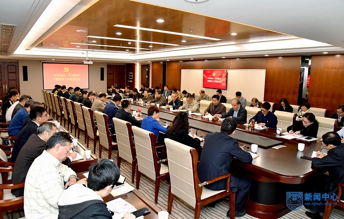 10月8日上午,学校在江浦校区重点实验室三楼会议室召开“不忘初心、牢记使命”主题教育工作推进会。校领导芮鸿岩、崔益虎、吴胜红、郝建祥出席会议,各党群部门主要负责人、各基层党委(党工委、党总支)书记参加会议。省委第九巡回指导组列席指导。会议由校党委常委、副校长吴胜红主持。