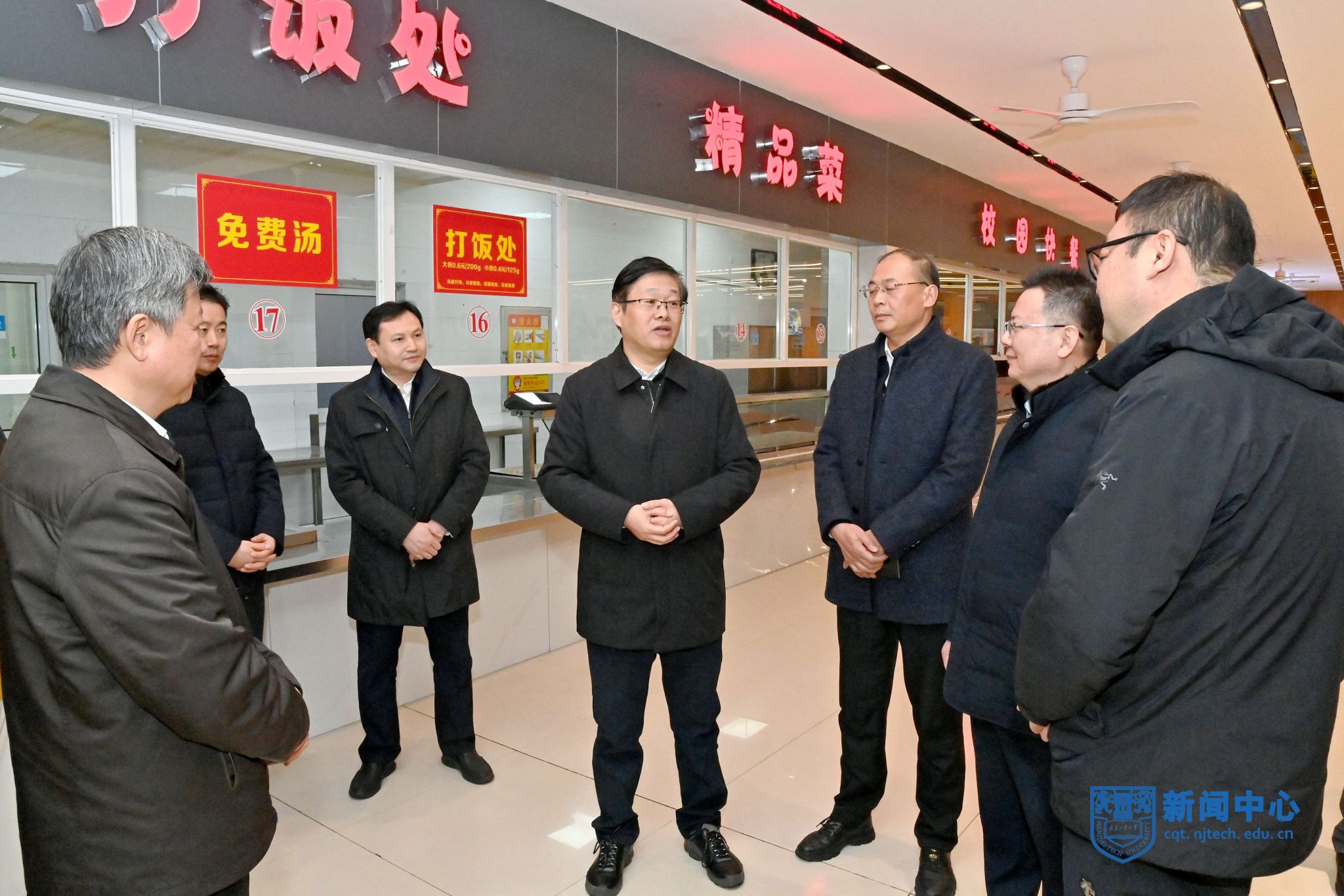 1月18日,江苏省市场监管局局长、党组书记沈海斌,南京市政府秘书长郑晓明,南京市市场监管局局长、党组书记时新峰及相关处室、辖区负责人来校调研检查校园食品安全工作。校领导芮鸿岩、蒋军成、郭万牛陪同调研检查。