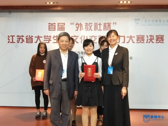 10月31日,由省教育厅指导,江苏省高等学校外国语教学研究会、江苏省翻译协会、江苏省外国语言学会、上海外语教育出版社共同主办的首届“外教社杯”江苏省大学生跨文化能力大赛在南京大学落下帷幕。经过初赛、选拔赛,本科英语组、高职英语组、小语种组和留学生组共34人入围决赛。在郭平、平静、陈皓等老师的精心指导下,日语专业李红同学获得小语种组特等奖,英语专业朱梦杨同学获得本科英语组二等奖,德语专业崔婕同学获得小语种组三等奖。