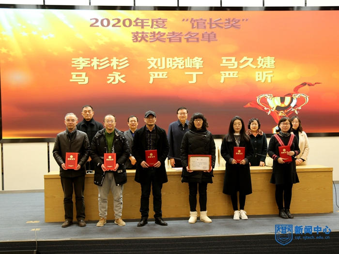 随后,图书馆党总支书记孙宇宣读图书馆各项业绩奖获奖名单,副馆长冯君宣读《工作满三十年表彰决定》,大会举行了颁奖仪式。与会领导为获奖人员颁发证书,馆长奖代表也是图书馆工作满三十年的马久婕老师和优质服务奖代表黄华分别发表了获奖感言。