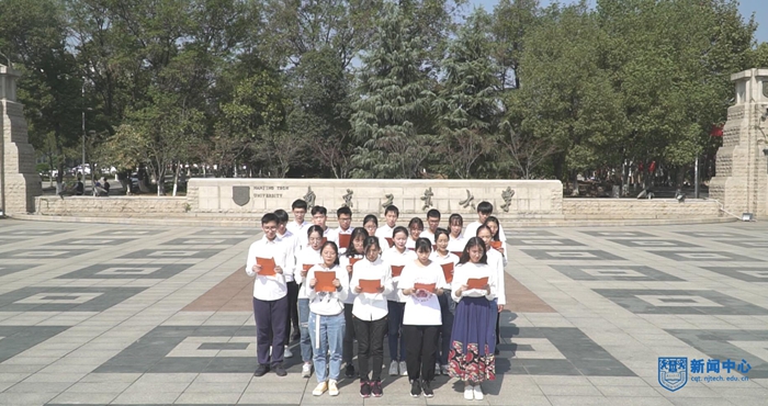 参与诵读活动的2019级新生在老师和学长、学姐的带领下,从我校恢宏大气的校门口,一直踱步到郁郁葱葱的化工教育家时钧先生纪念园,最后再回到庄严静谧的逸夫图书馆,在每一个具有特殊意义的地方,诵读《论语》,身临其境地感受孔老先生“学而不思则罔,思而不学则殆”的教育理念,和“修身、齐家、治国、平天下”的价值选择。用儒家传统文化中所蕴含的哲学思想、人文底蕴、教化精神,开启大学论道之门,点亮人生理想之光。这次诵读活动对于刚入学的2019级大学新生来说,无疑是意义非凡的一次传承经典之旅,也是扣好人生“第一颗纽扣”最传统和经典的教育仪式。