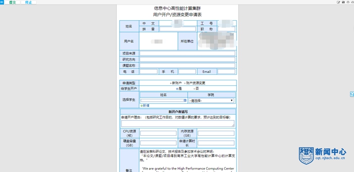 为方便师生使用,我校于2018年底开始研发“智慧南工”与校高性能计算平台的深度融合创新,经过一年时间终于成功融合,达到理想效果。