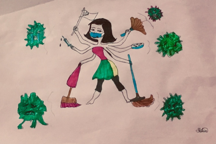 不仅如此,很多同学都在自己的朋友圈表达了对中国早日战胜病毒的信心,来自哈萨克斯的2017级Nargiz Kamalova同学和来自孟加拉的2018级AKTER同学还创作了绘画作品来为中国加油!