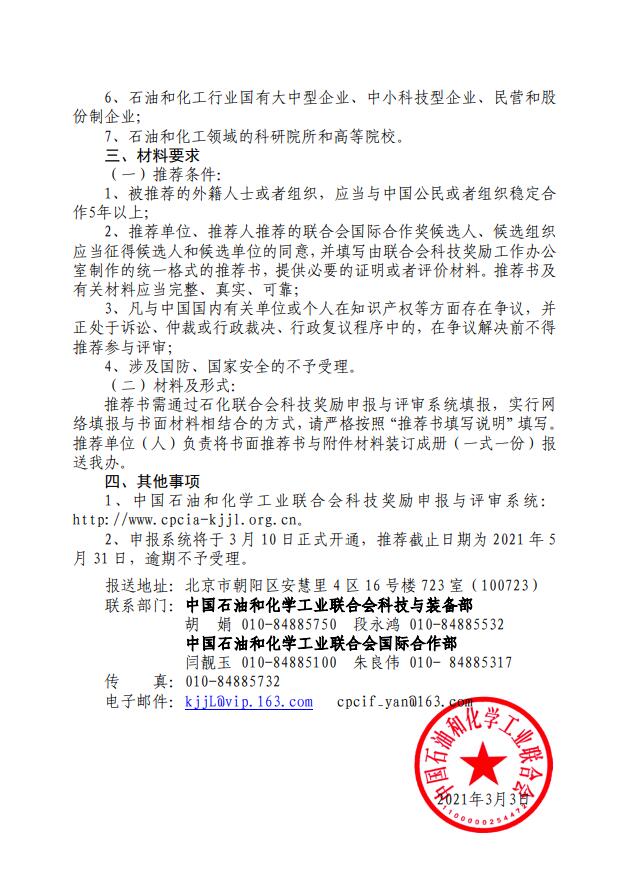 1、中国石油和化学工业联合会科技奖励申报与评审系统:http://www.cpcia-kjjl.org.cn