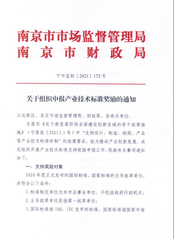 【标准奖励】转发:关于组织申报产业技术标准奖励的通知