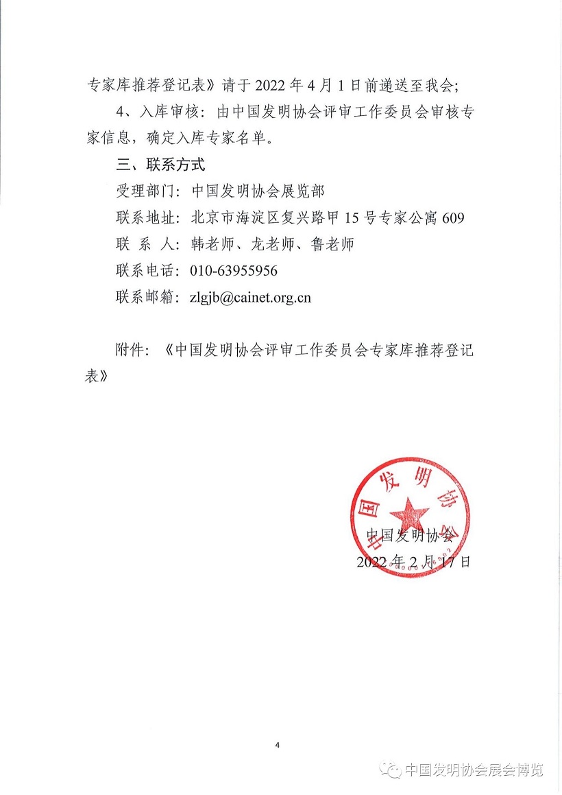 【专家征集】关于推荐中国发明协会评审工作委员会专家库专家的通知