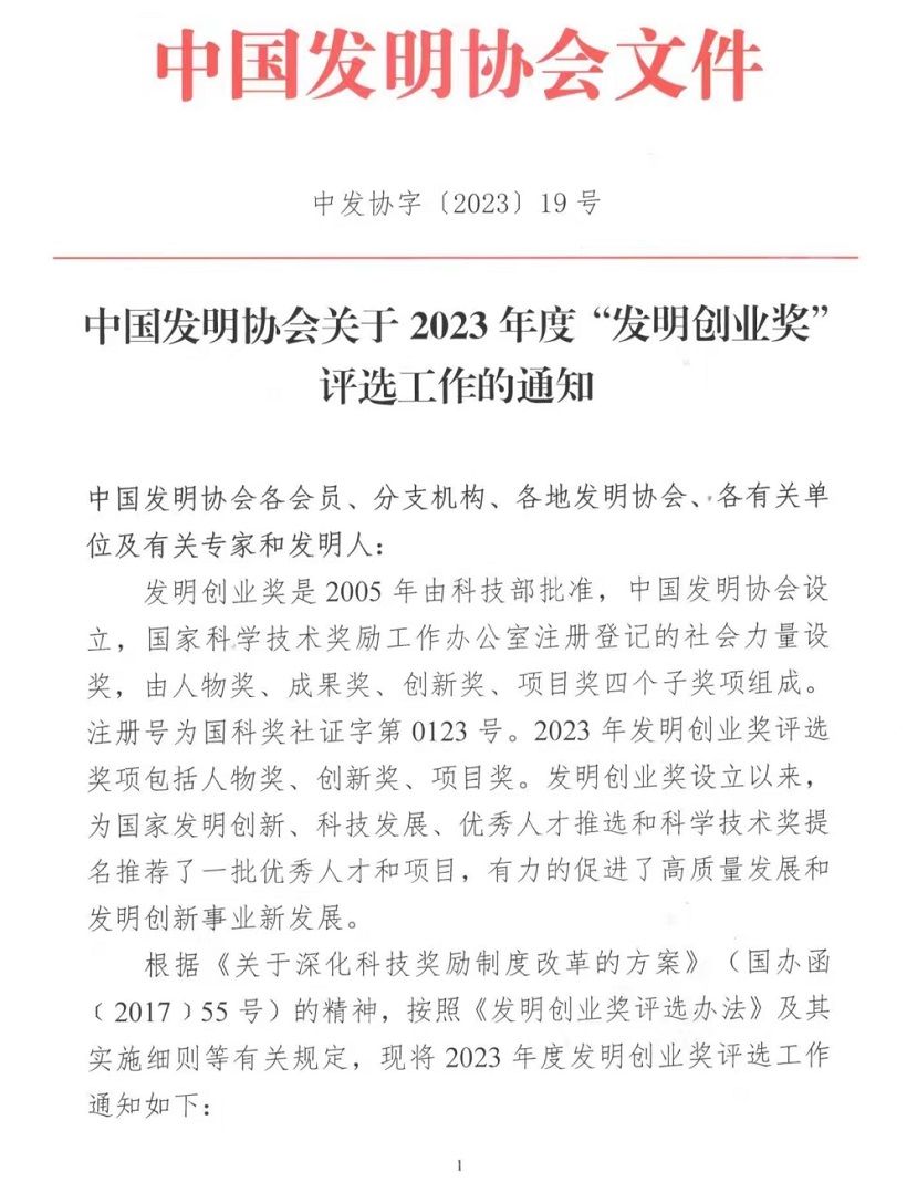 中国发明协会关于2023年度“发明创业奖”评选工作的通知.pdf