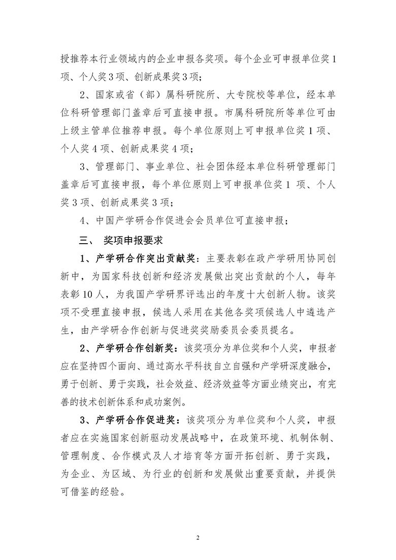 产学研合作创新与促进奖采取推荐制,每个单位原则上可申报单位奖1项、个人奖4项、创新成果奖4项。我单位可直接申报(原则上每个学院每个奖项限报1项);超额,则遴选推荐。