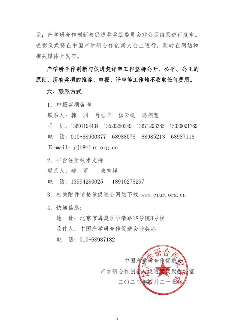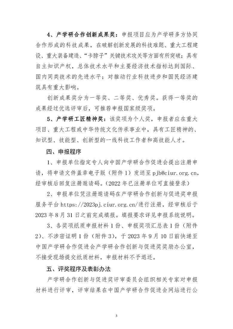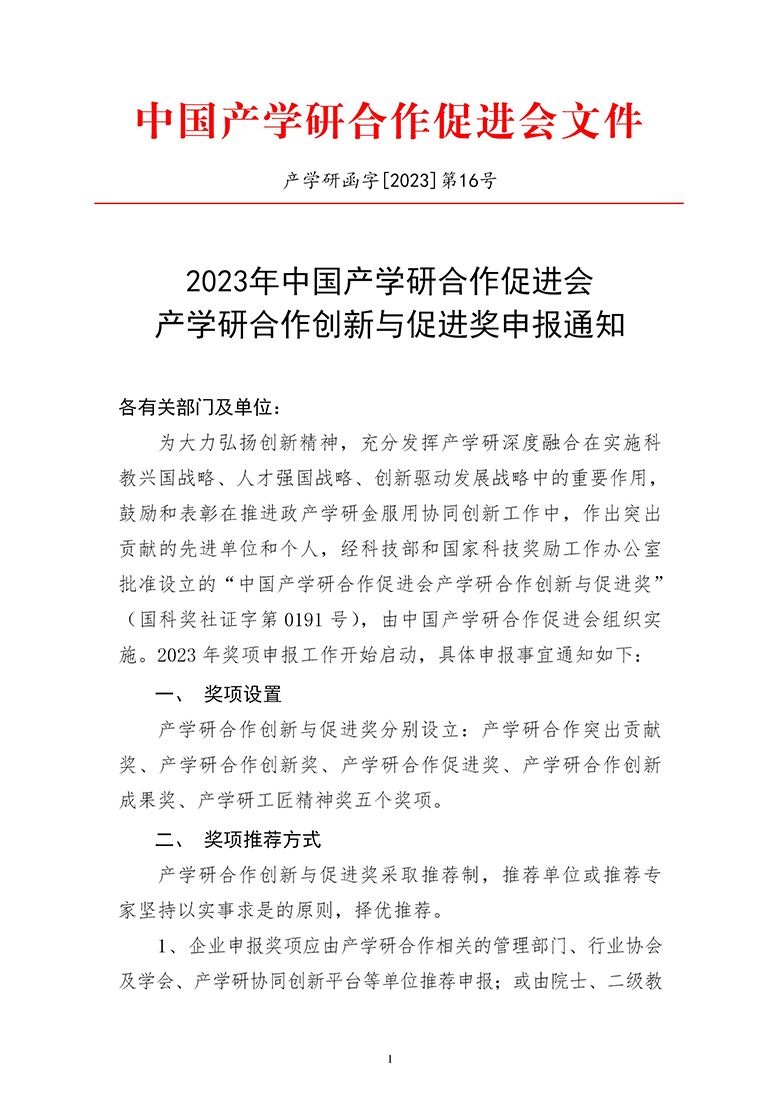 根据《2023年中国产学研合作促进会产学研合作创新与促进奖申报通知》有关要求,该奖项申报工作现已启动,请做好相关奖项组织工作。并请有意向申报者做好准备,认真填报。