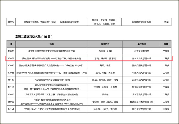 近日,图书馆申报的《高校图书馆新生培训创新服务——以新利18彩票 图书馆为例》,在中国图书馆学会高等学校图书馆分会举办的“2017年高校图书馆发展论坛”学术论文及应用案例征集和评审活动中荣获二等奖。本次活动共征集到52篇应用案例,其中一等奖4篇,二等奖10篇,三等奖19篇。