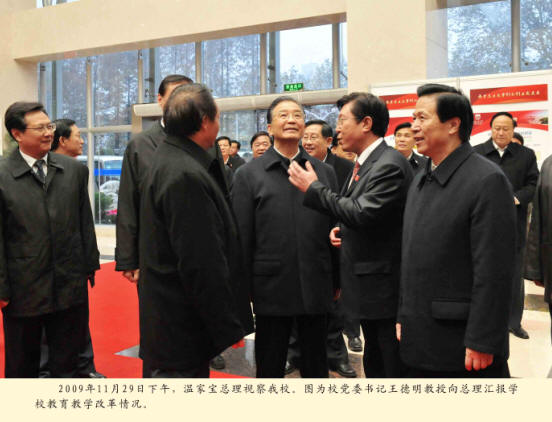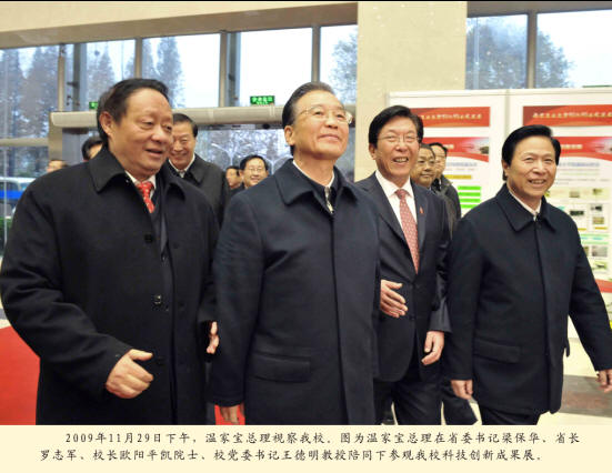 11月29日下午,温家宝总理在江苏省委书记梁保华、省长罗志军的陪同下来到新利18彩票 视察,受到在场师生的最热烈欢迎。