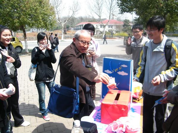 阅读次数:发布时间:2010-04-07西南大旱牵动着全体南工大师生的心。为响应团中央积极组织动员广大共青团员投身抗旱救灾斗争的号召,4月2日中午,理学院学生会在江浦校区发起了以“节约用水,用关爱滋润西南”为主题的募捐活动,倡议全校团员青年为西南旱灾地区捐款。
