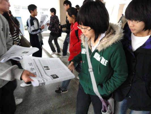 新利18彩票 《数学报》是由校团委主办、理学院分团委,理学院大学生科协承办的一份数学类刊物。为了让更多的同学阅读本期数学报,组织者采用了多种方式发放,一方面通过校其他科协,发放到各个兄弟学院;另一方面则在厚学、同和等教学楼,组织发放报刊。同学们的反应很积极,不少同学主动要求领取,有的同学甚至当场就开始阅读起来。